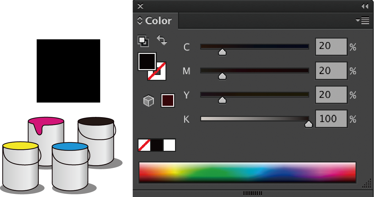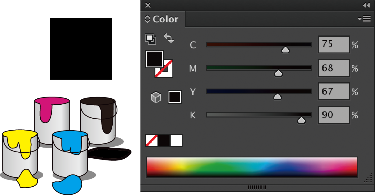 Using rich black for body text or thin lines may become difficult to read if any misalignment occurs.