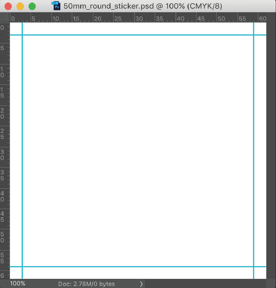 When you open our template, it will look something like this. The 4 guide lines you see show the trimming area.