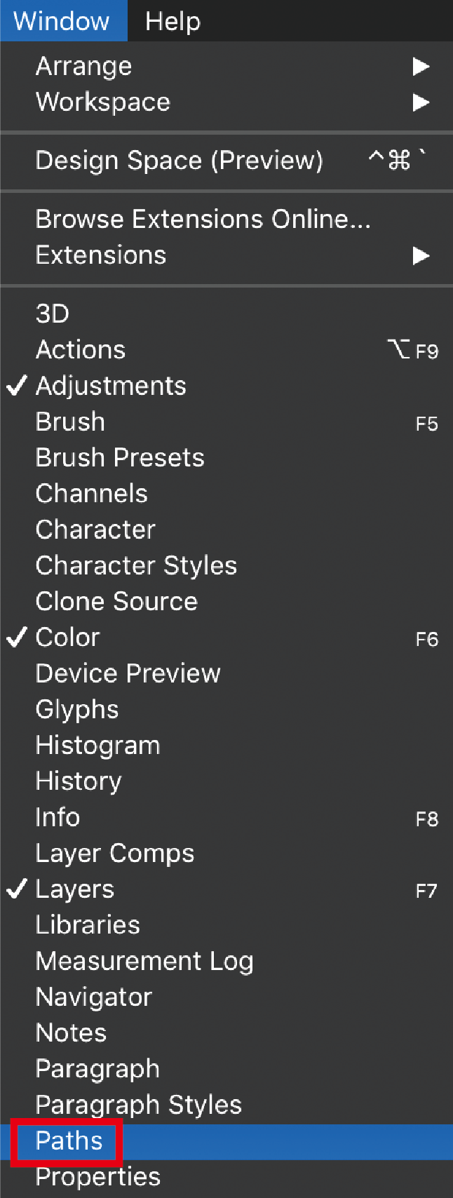 Click on the Paths palette (on the same window as the Layers palette). If it is not visible, choose: Windows > Paths