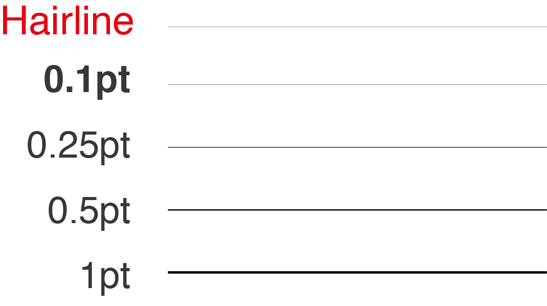 The same is true for lines. If the line is too thin it will not print cleanly or clearly. Metro Print recommends lines to be at least 0.25pt thick for offset printing and 0.4pt for digital printing.