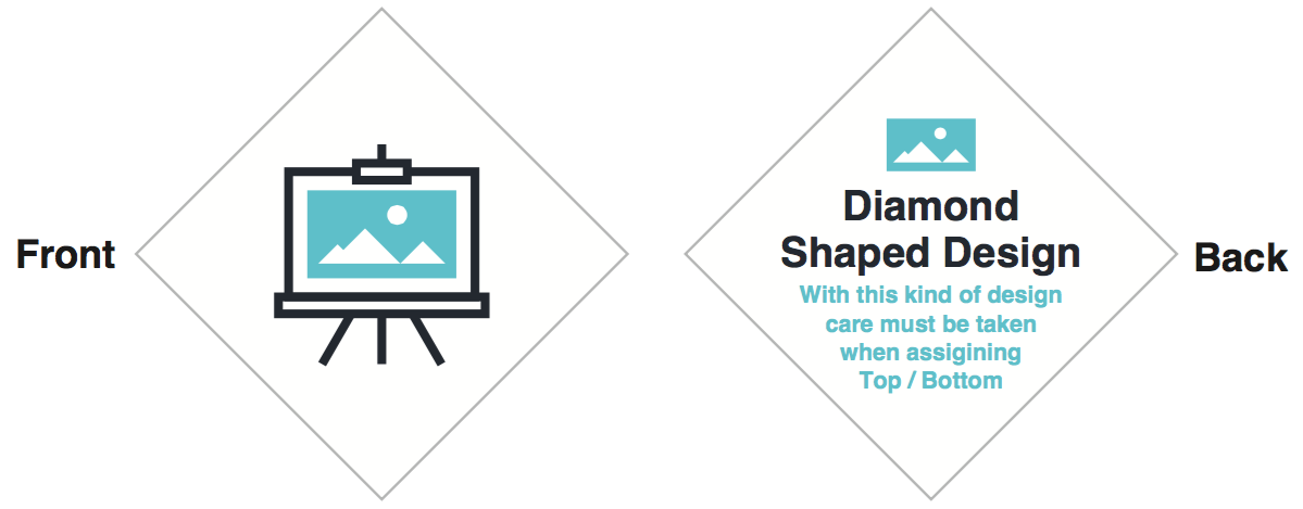 Please note: with diamond shaped artwork, you must indicate which is the top and bottom of the design. Square artwork without proper orientation labelling will not advance to the production stage until you can confirm it.