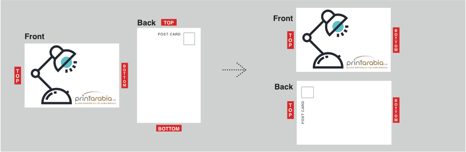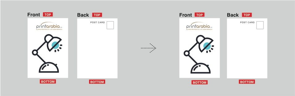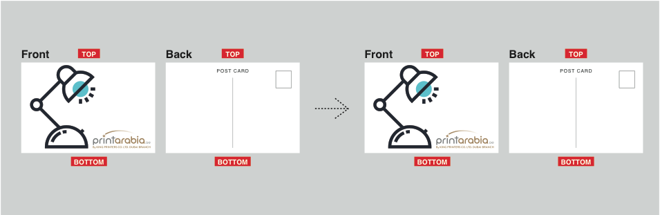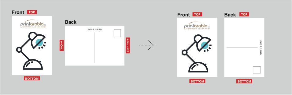 If you are designing for a two sided, flat product, the orientation of your artwork will determine how the front and back sides will be printed in relation to each other.