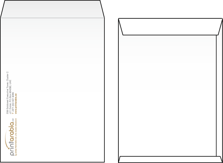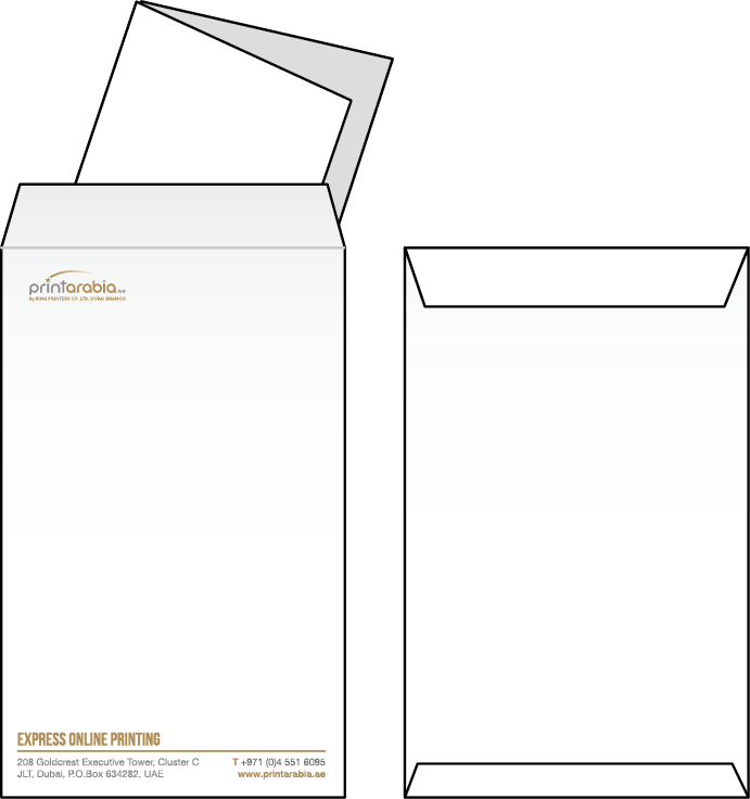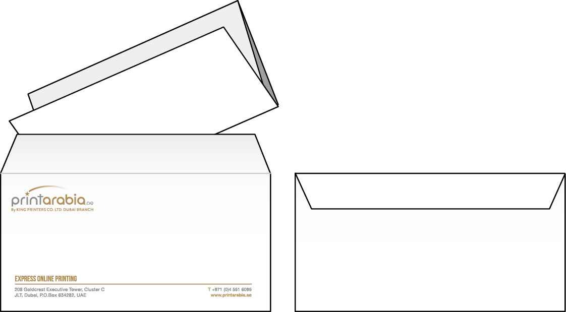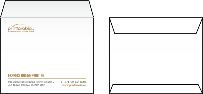 Please note:Because these are pre-folded envelopes, we cannot allow any full bleed designs (where colour extends to the edge). If you need a full bleed design you will need to order our Custom Envelopes.
